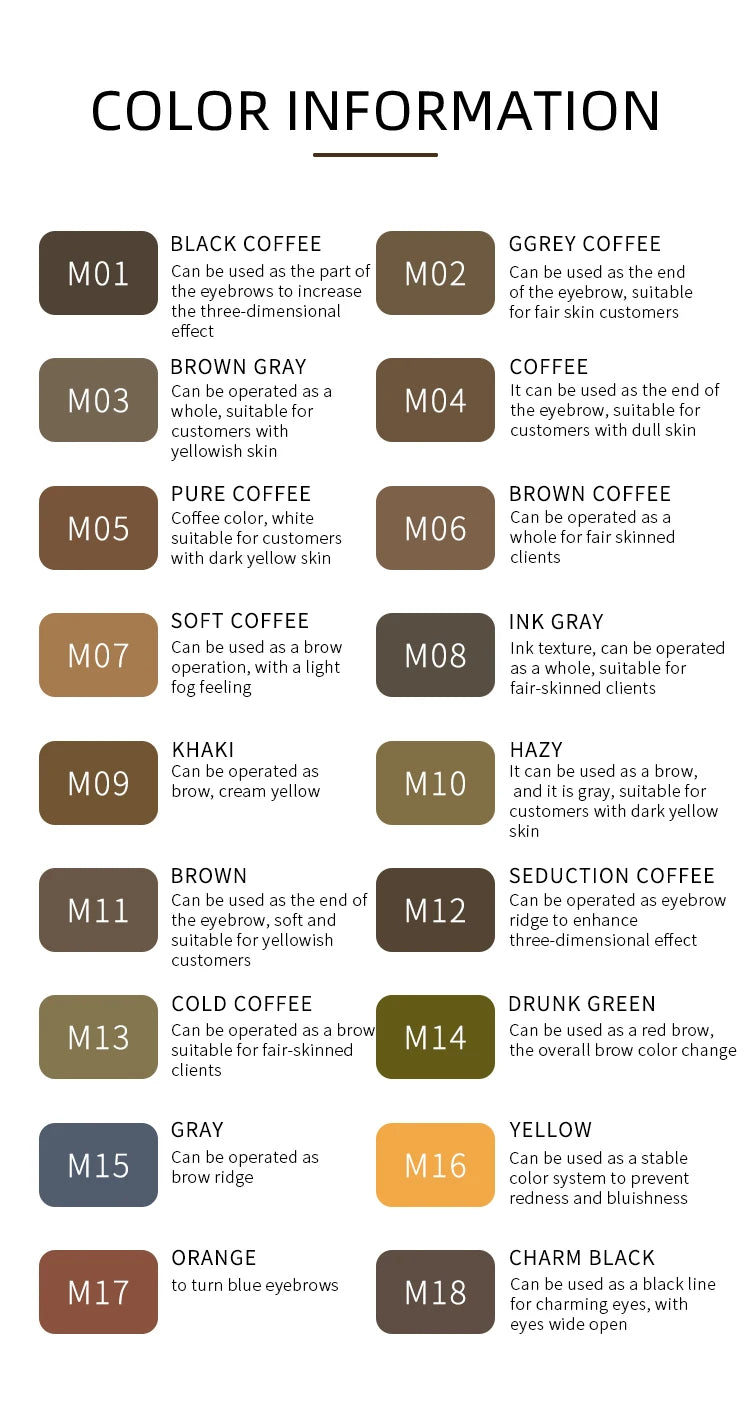 Micropigmentação de Sobrancelha 18 Cores Pigmento de Maquiagem Semi Permanente para Delineador